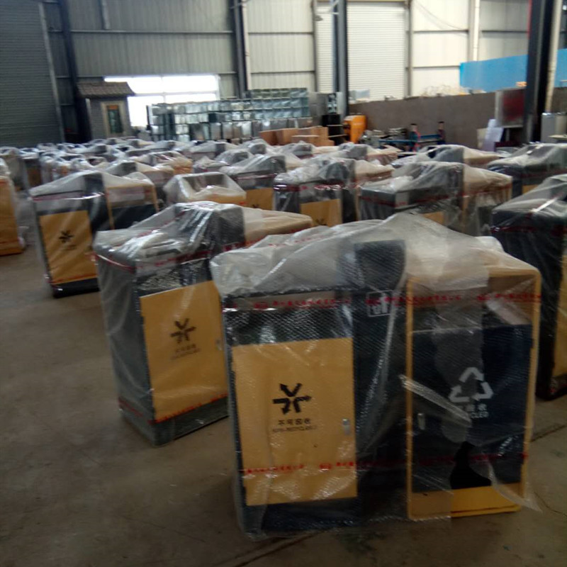 垃圾桶整體:采用優質冷軋鋼板加工而成,表面經過除油、噴砂防銹處理后,再進行酸洗磷化處理;表面清理干燥后整體進行靜電噴涂或烤漆處理,靜電噴涂是經過流水線高溫固化爐固化后再出爐冷卻,加工后的塑粉附著力強,不易剝落。